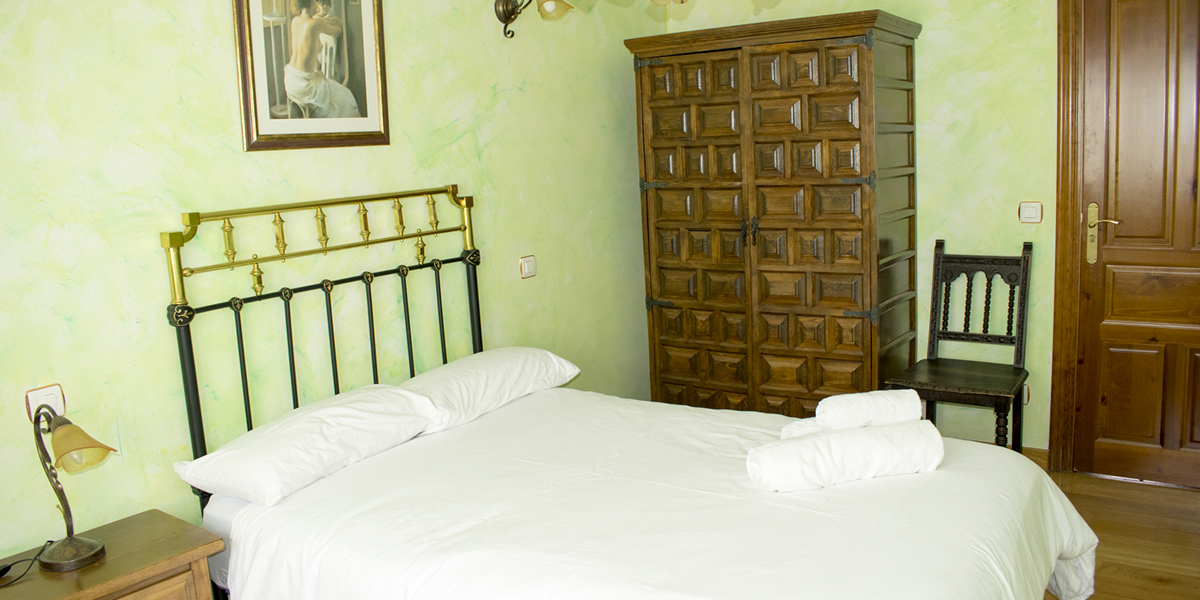Habitación doble con cama de matrimonio, sita en la segunda planta, y que cuenta con baño dentro de la propia habitación.